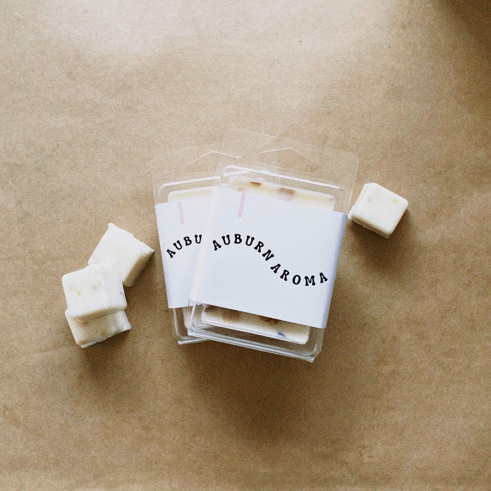 Handcrafted + poured in small batches our Aroma Melts are made from 100% natural and vegan + soy wax, with custom + unique fragrance combinations blended by hand, and the addition of dried rose, magnolia + pansy petals – strictly for aesthetic purposes.