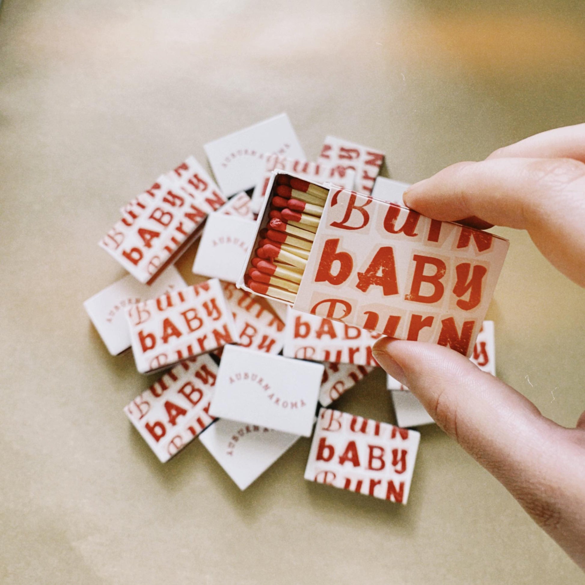Handcrafted by a fellow small business, each box contains 35 baby matches + 2 strike pads, ready to be lit at any time!