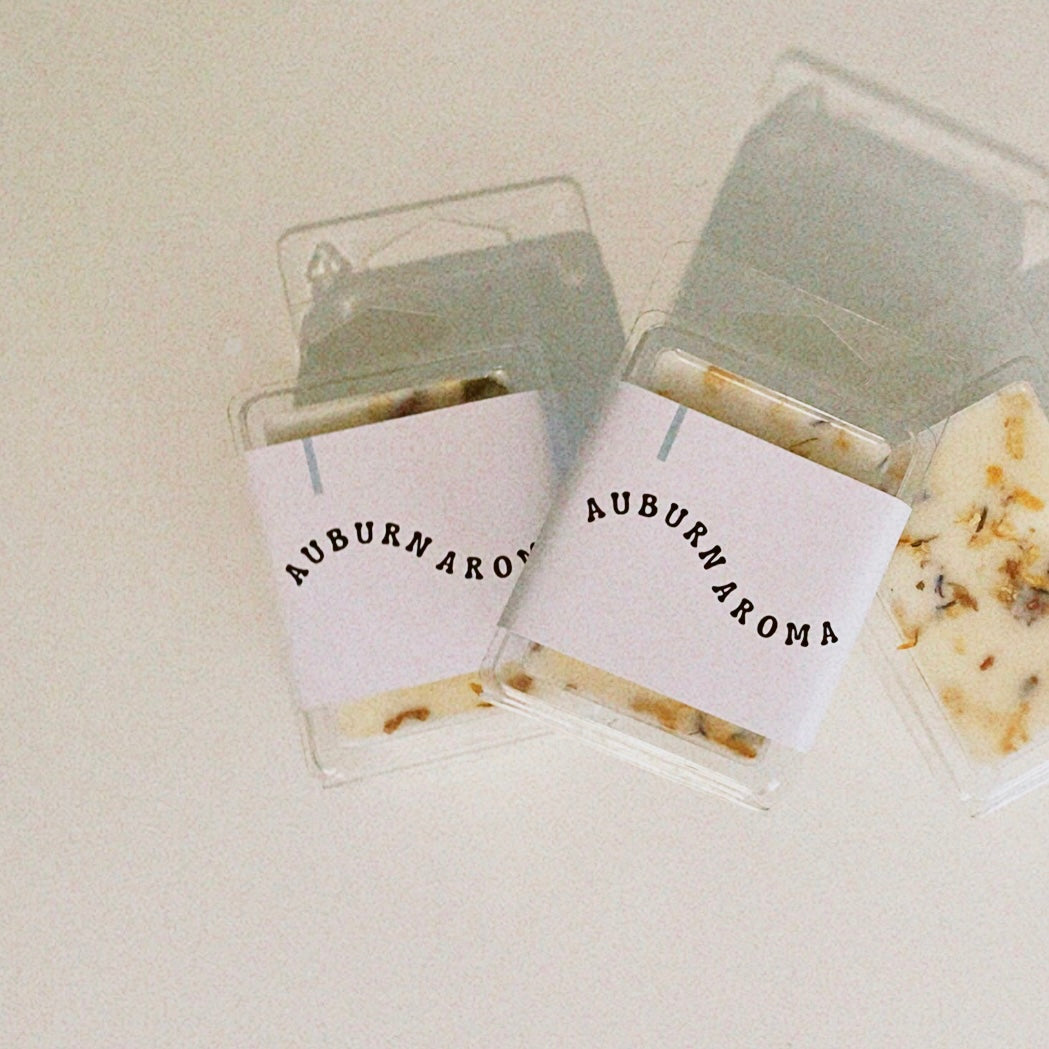 Handcrafted + poured in small batches our Aroma Melts are made from 100% natural and vegan + soy wax, with custom + unique fragrance combinations blended by hand, and the addition of dried rose, magnolia + pansy petals – strictly for aesthetic purposes.