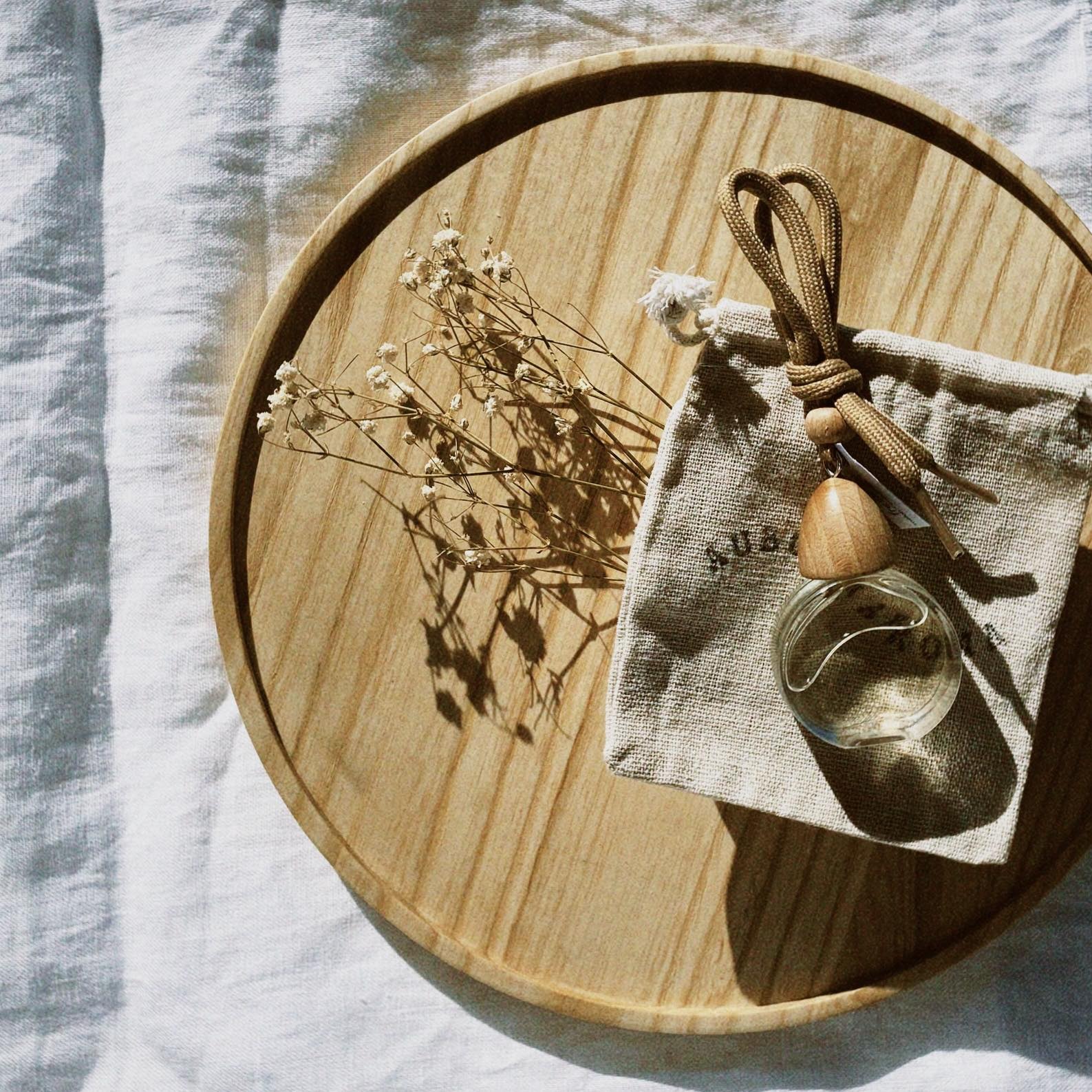 Unscrew wooden lid and remove the clear stopper from the bottle, then screw wooden lid back onto glassware. Flip your glassware upside-down and hold for 5 seconds to allow diffuser liquid to soak into wooden lid, but don’t saturate! Only flip your diffuser once or twice a week. Then, hang your diffuser!
